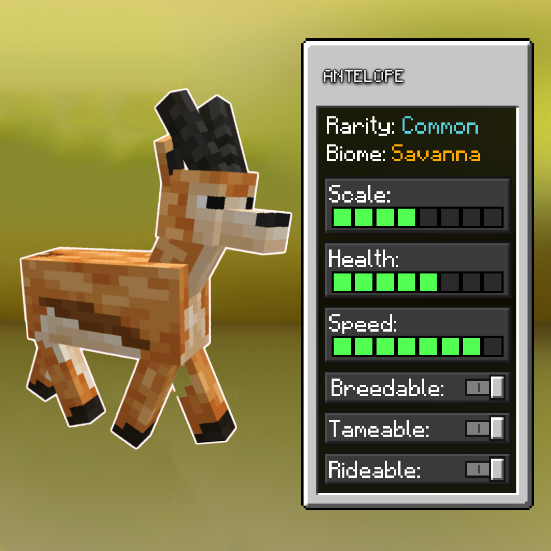 Since the Savannah biomes are being updated in 1.15 and beyond, we should have more animals to fit there besides an Ostrich, and elephants (which won’t be added). So, how about the Antelope? Antelope will be very fast passive mobs that flee from the player. They will have different skins and could even spawn in more biomes besides the Savannah. Our ideas for skins would be based off of the American Pronghorn, the Thompson’s Gazelle of Africa, the Nigali of India, the Gemsbok of Africa, and the Arabian Oryx. Antelope would live in packs and would graze on grass. When killed they could drop Mutton and small chance to drop their horns. Overall we think they would add a ton of life to Minecraft.